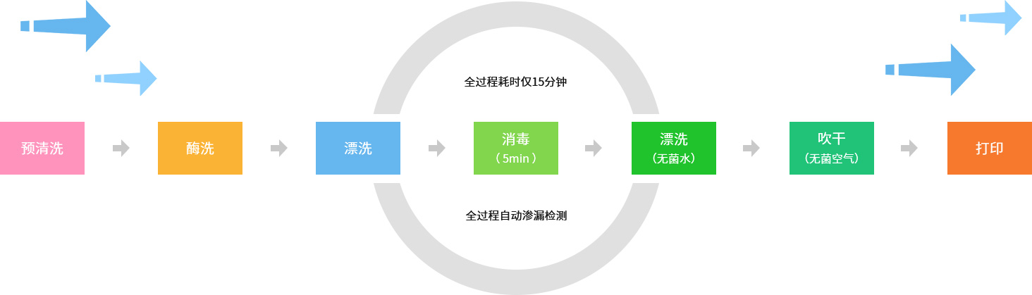 综合性医院由于患者较多,病人内镜检查频率过高,清洗消毒时间不足,消毒不彻底,存在严重的患者医院感染以及医护人员的病原性感染风险,目前医院使用的内镜清洗消毒装置虽然可以节约人力和控制时间,但尚未达到完全自动化和规范要求,我公司研发的全自动软式内镜清洗消毒机采用微电脑控制,一键式启动、高压喷淋,对内镜各管道全自动侧漏、清洗、酶洗、漂洗、消毒、末洗、酒精干燥和空气干燥、打印,实现对镜体全浸泡,完成洗消过程只需8-15分钟,提高了医院内镜周转使用率,减少患者的排队等待时间,符合内镜清洗消毒机的国际标准(软式内镜清洗消毒机标准的范本)ISO 15883-4版本。方便快捷、科学高效,对内镜无损伤,并保护医护人员健康,减轻医护人员的劳动强度。